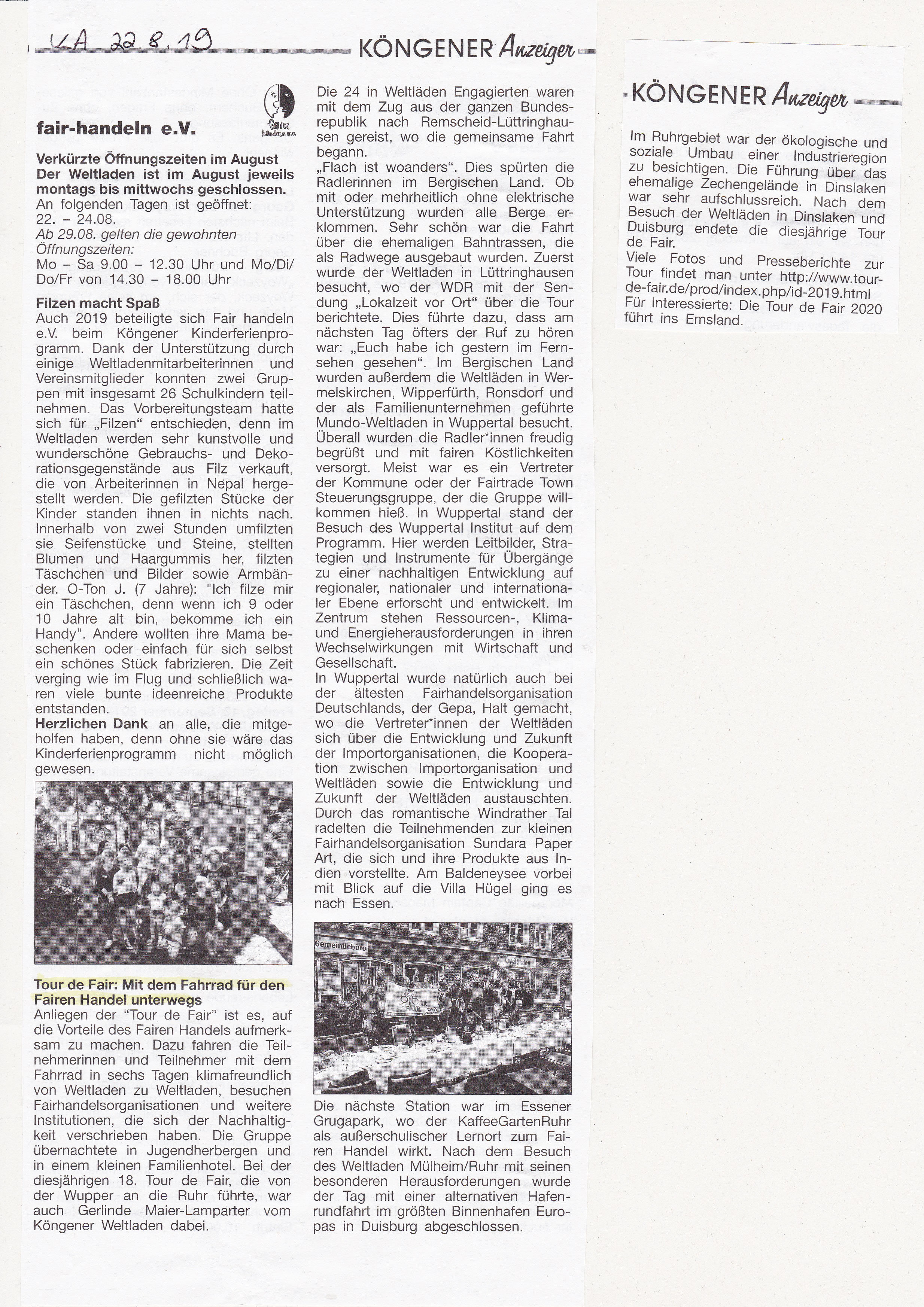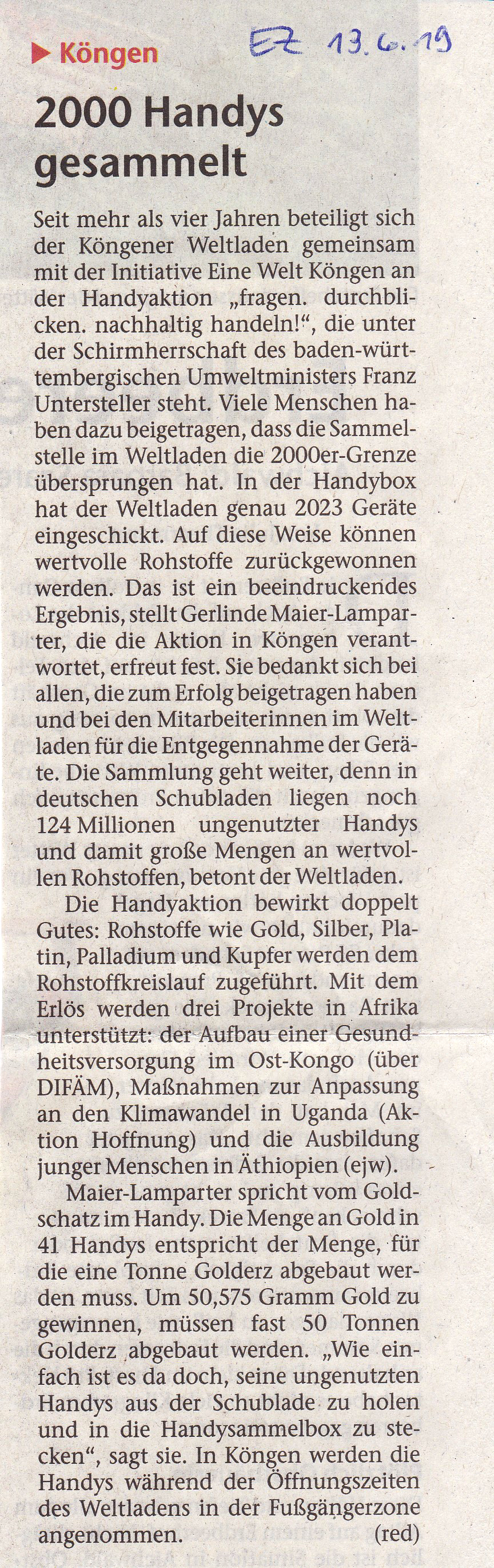 KA 09.07.20 Fairwert statt Mehrwert! - 5 Jahre Handyaktion in Köngen