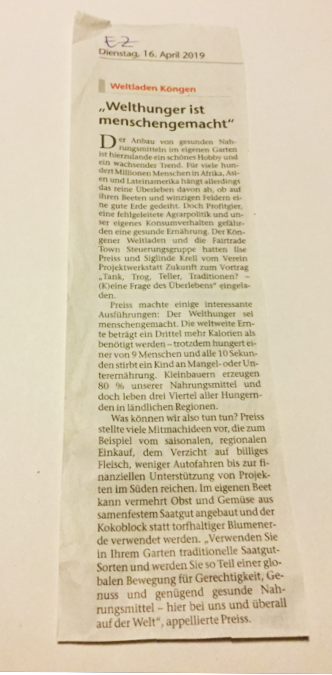 Welthunger ist menschengemacht EZ 16.4.2019
